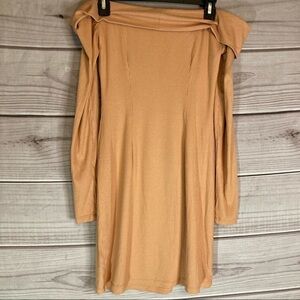Brand new has never been worn but tags were removed. Sweet as toffee. The Silas Dress by Privacy Please is cut from soft rib knit fabric and features an off-the-shoulder silhouette. Pull on some over-the-knee boots to dress up the look. Fully lined and rib knit fabric.