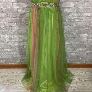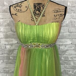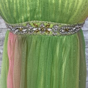 PRIVADA Collection Beaded Mesh Rainbow Maxi Dress