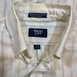 PRIVATE CLUB & ELECTRIC AVENUE, MENS SHIRTS. SET/2, PRIVATE CLUB, MENS, WHITE STRIPE, LONG SLEEVE, BUTTON DOWN COLLAR, SHIRT. SIZE 15 1/2–32/33. ELECTRIC AVENUE, MENS LAVENDER STRIPE, LONG SLEEVE, SHIRT. SIZE M