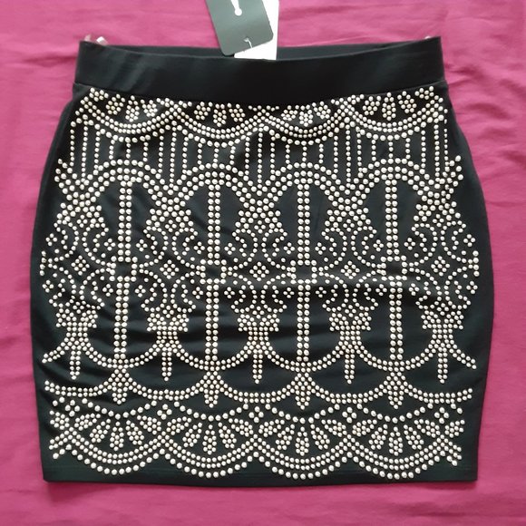PRIVY Dancing Queen Silver Studded Black Skirt, Size ; Medium - New with Tags!