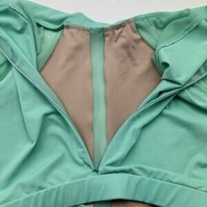 Front panels lined except for the sheer mesh insert in center. Long sleeves are sheer mesh.