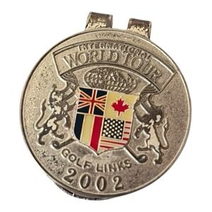The 2002 International World Tour Golf Links Badge Money Clip is a unique product designed for golf enthusiasts. This money clip features a multi-color design specific to the 2002 International World Tour Golf Links event, making it a special and collectible item for fans and participants. This badge money clip is a fun and practical way to show off your love for golf while keeping your cash secure.