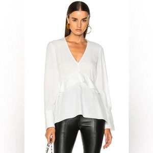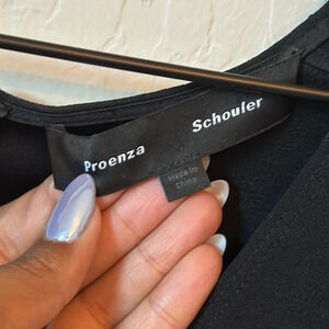 PROENZA SCHOULER Black Crepe Jacquard Long Sleeve V-Neck Blouse Size 10