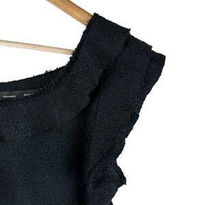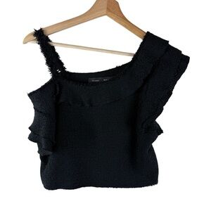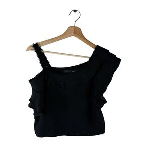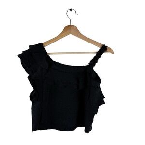 PROENZA SCHOULER Black Tweed Ruffle Sleeve Crop Top