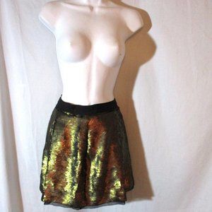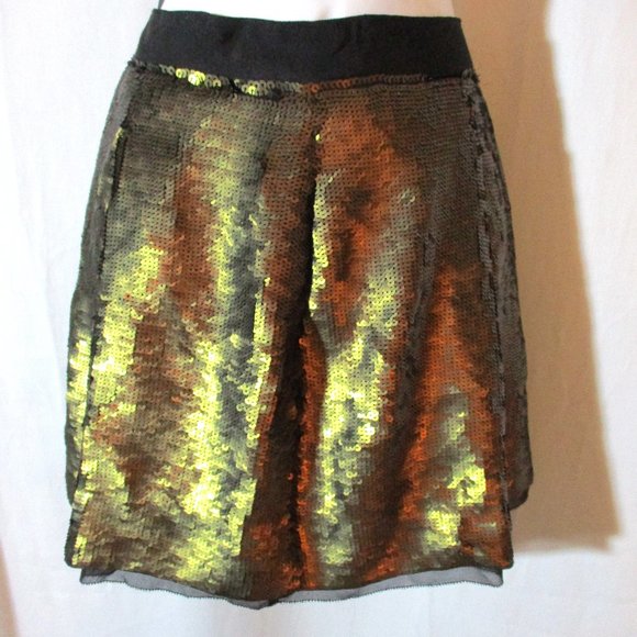 From the estate of one of this country's top fashion buyers with INCREDIBLE LUXURY tastes, stunning PROENZA SCHOULER gold sequin on black pleated mini skirt. Size 6; measures approx 32" waist, 13.5" long. Great for red carpet or club wear. Guaranteed compliments - PSYCHOTIC LEOPARD says, "Be spotted!"