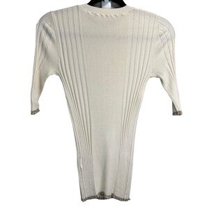 Rib knit in silk with notes of cashmere, the New York label's crewneck top is adorned with hammered gold-tone buttons. Elbow-grazing sleeves. Pull-over style.