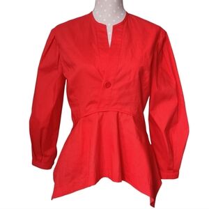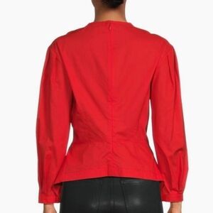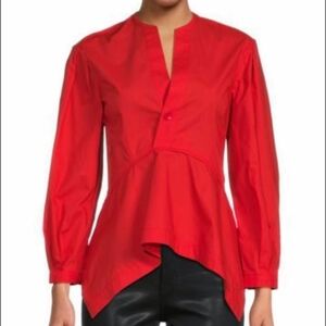 PROENZA SCHOULER White Label Poplin Top Red Long Sleeve V-Neck Cotton Shirt Size 4