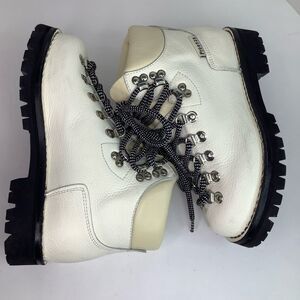 PROENZA SCHOULER White Leather Lug Sole Cord Ankle Combat Hiking Boot 37/US 6.5