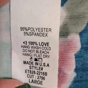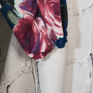 Professional Business Casual Floral Blue Aqua Stretch Long Sleeve Blouse Sz L