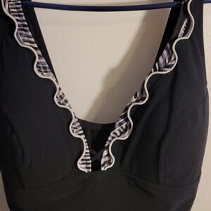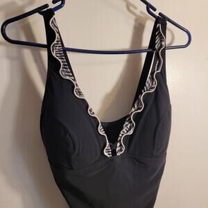 PROFILE BY GOTTEX E0032073 Womens Black Ruffle Low-Cut One Piece Swimsuit Sz 12