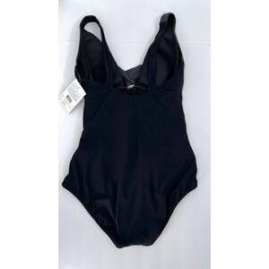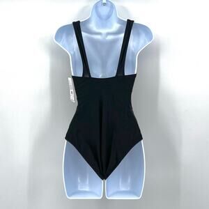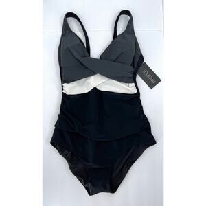 PROFILE BY GOTTEX Lets Twist One Piece Swimsuit Women 16 Black Gray V Neck Tank