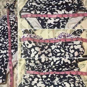 PROFILE BY GOTTEX Upf 50 Pop Flower D Cup Tank One-Piece Swimsuit Purple Navy Blue White 8 D. Floral Printed, Pull On, Adjustable Straps, Tummy Control, deco tie shoulder details, ruched front, built-in bra with concealed adjustable back hook closure, underwire support, upf 50 plus protection, fully lined, fabric provides stretch, one-piece swimsuit, sweetheart neck recycled 73% RECYCLE NYLON, 27% EXTRA LIFE LYCRA.