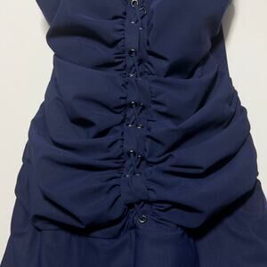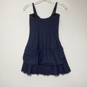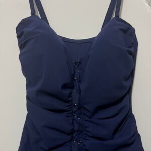 PROFILE by GOTTEX 60s Style Ruched Navy Lace Up Swimsuit Dress Size 12 Large