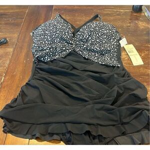 PROFILE BY GOTTEX BASH PLUS SIZE UNDERWIRE HALTER BLACK SWIM DRESS