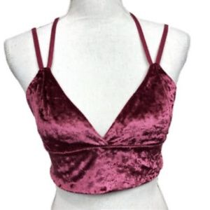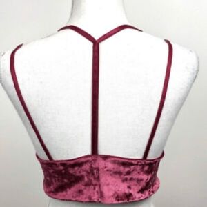 PROJECT 28 NYC Wine Red Crushed-Velvet Bralette Tank Top Strappy
