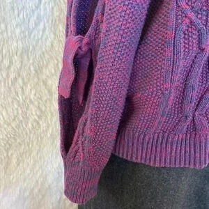 PROJECT NAADAM Cotton Blend Chunky Knit Tie Sleeves Pullover Sweater Top in Size Medium. Fabric is made of 60% Cotton and 40% Polyester materials. Pre owned and and in very good condition. It has a purplish and pinkish color combination.