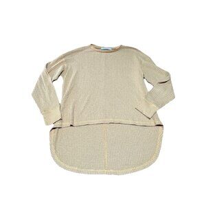 Cozy waffle knit long sleeve top by Project Social T. Features a relaxed fit with high-low hem and exposed seam details. Soft texture, perfect for layering or everyday wear.