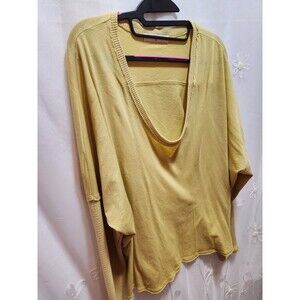 Features: SCOOP NECK, LONG DOLMAN SLEEVES, YELLOW COLOR, RIBBING, THERMAL, HIGH-LOW STYLE