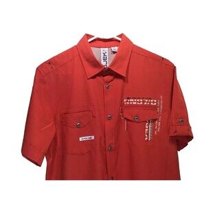 PROJEK RAW Men's Red Tech Design Bottom Up Short Sleeve Stretch Shirt Sz Medium