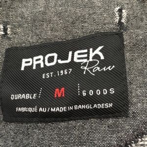 PROJEK Raw men’s cable knit cardigan featuring zipper closure with two front pockets..