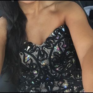 Worn once, black and nude jovani dress, size 0. No alterations have been done whatsoever. Beautiful dress. Pictures don't do it justice!