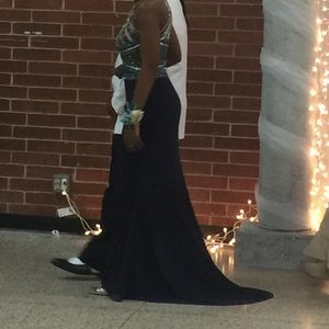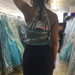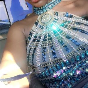 Halter neck , full bling top , navy blue bottom, cutout back