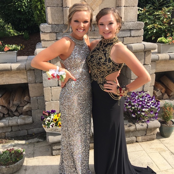 amazing backless prom dress worn twice!! Slight tears at the bottom but with alterations is an easy fix. Such a comfortable dress!! Is a 2 but fits more like a 4.