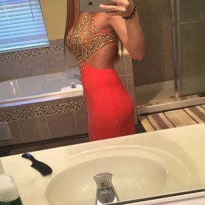 Selling my prom dress from last year. Worn once. Great shape. I'm 5'7 and the dress just touches the ground. This is a size 2 but could fit a size 4