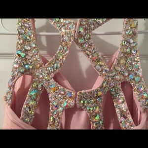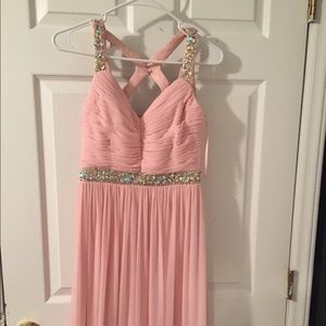 Very pretty and very detailed prom dress, size 2! Gently used, only worn once! Amazing beading details on back of dress! Light pink!