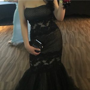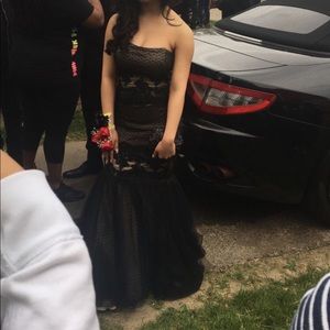 Beautiful black and nude prom dress. Black tulle train. ONLY WORN ONCE.