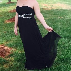 Simple black prom dress! Wore once! Great condition! I will upload my pictures, just ask😊😊 the mid drift area where the jewels cross at is see through🥰