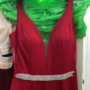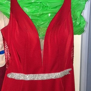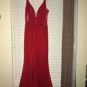 Open back, beautiful red color (mermaid style) prom dress. Only worn once. Perfect condition and material.