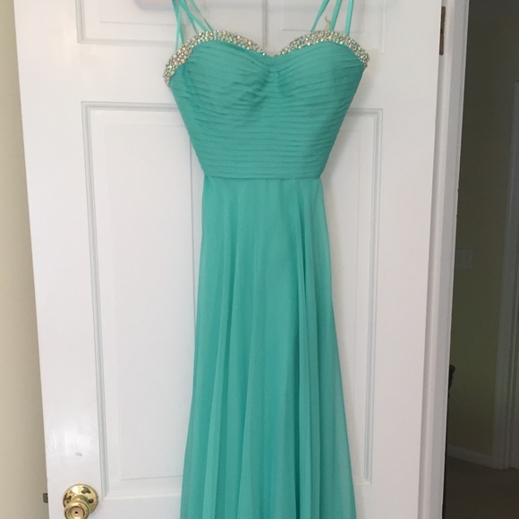 Teal prom dress. Beaded top. Only worn once. Hemmed for a 5’6” height