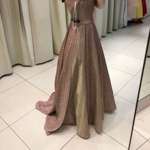 Sparkly gold/pink hue. The sparkles don’t shed and it has pockets! Brand new with tags.