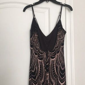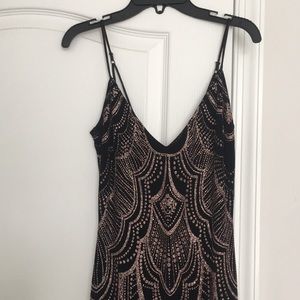 SUPER LIGHT !! spaghetti strap black dress, with rose gold glitter design. v-neck, and open back.