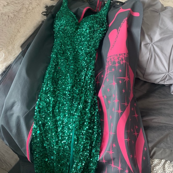 Sherri hill prom dress. size 4 altered to be a 0. slit on the right leg. beautiful emerald green dress, never worn!!