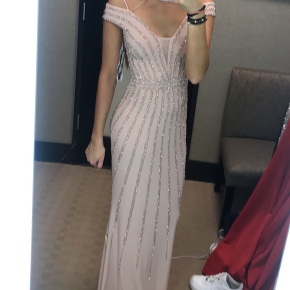 only worn once in great condition, almost brand new. light baby pink dress with silver studs.