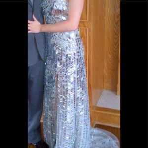 Bejeweled prom dress - slit in front - strapless - zips up in back - WORN ONCE! SO PRETTY - just will never wear again :( my favorite dress!!!