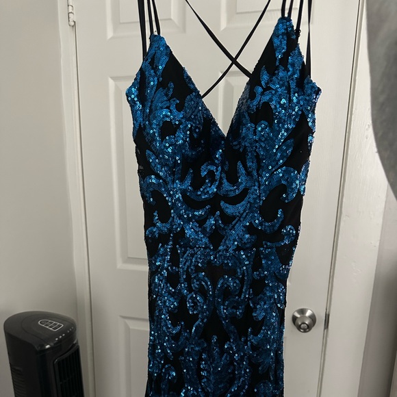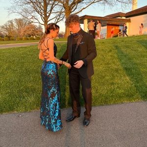 black & blue prom dress