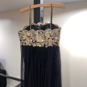 black and gold beautiful prom dress. work is as shown. has a zipper. size 8-10