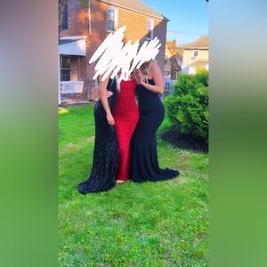 FORMALS XO PROM DRESS!! wore this dress for prom it looked so good in pictures!!! It is a size 12 but would fit like a medium in my opinion. it’s strapless!!! and has like a little corset part in the middle of the dress looks so cute!!! i am open to offers also