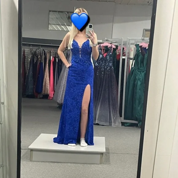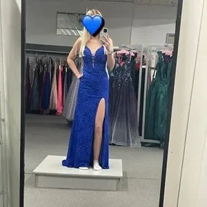 size 2 prom dress!! never worn but tags have been taken off, super comfy, slit on side and open back. is in fantastic condition and just lookin to be gone asap!!