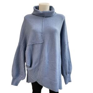 PROMESA High Art Asymmetrical Funnel Neck Sweater Ash Blue wool blend sz Large