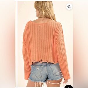 PROMESA MAD LOVE DISTRESSED RIBBED KNIT SWEATER