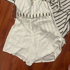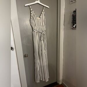 striped jumper with slits on both legs also has built-in shorts. Zips up on the side adjustable straps. In excellent condition still like new. Comes from a smoke-free environment.