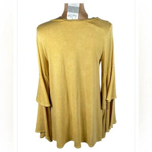 💛 PROMESA~Mustard Bell Sleeve Loose Fit Blouse Small ~NWT