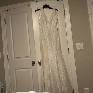 OBO!! WORN 1 TIME!!!! MAKES YOU LOOK SO SO TAN. IT IS A BASE TONE OF WHITE WITH GOLD AND SILVER ACCENTS ALL OVER THE DRESS!!!