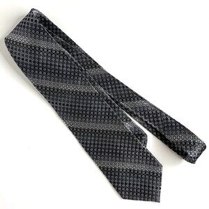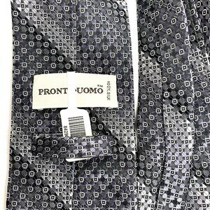 PRONTO UOMO COUTURE Frosted Silver Black Gray 100% SILK TIE Handmade Geometric