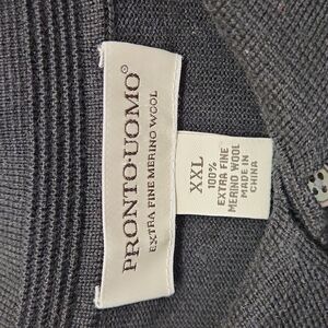 Pronto Uomo extra fine merino wool sweater men's XXL . there are small flaws noted in photos. left sleeve has 2 tiny holes and one even smaller hole on the torso. likely easy to repair