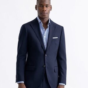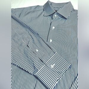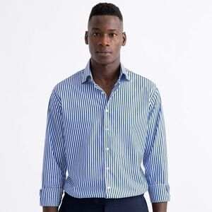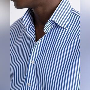 PROPER CLOTH Men’s Stanton Broadcloth Dress Shirt Blue Bengal Stripe 18.5/35